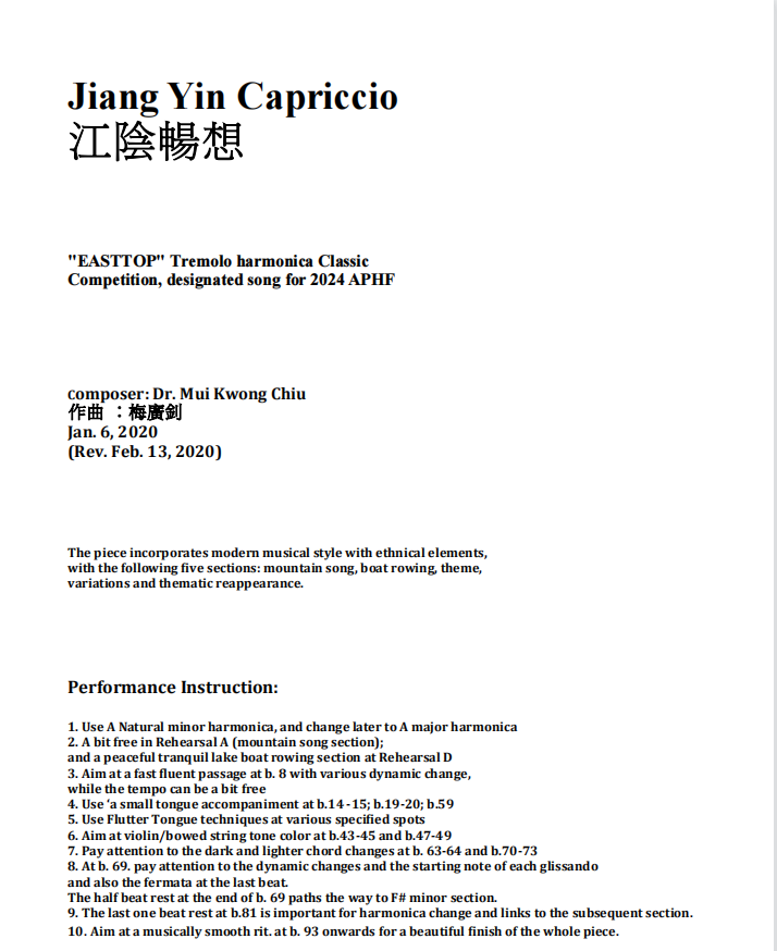 14th APHF "EASTTOP" Tremolo harmonica Classic Competition