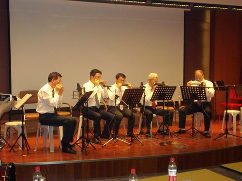 樂(lè)團(tuán)成員的年齡從十幾歲到八十多歲,每個(gè)年齡段都有,副團(tuán)長(zhǎng)邵玉棠老師今年80多歲了,吹起口琴不減當(dāng)年,經(jīng)常和小樂(lè)隊(duì)一起參加豫園社區(qū)的活動(dòng),小的隊(duì)員孫啟,是指揮丁進(jìn)老師的學(xué)生,才小學(xué)四年級(jí),學(xué)半音階口琴已有5年了,還能打的一手好架子鼓,樂(lè)團(tuán)成員中還有軟件工程師,中小學(xué)、幼兒教師,企事業(yè)負(fù)責(zé)人,退休干部和在校大學(xué)生等。豫園口琴樂(lè)團(tuán)是一支非常有潛力和發(fā)展前途的口琴團(tuán)體。