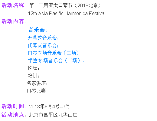 第十二屆亞太口琴節(jié)(2018北京)---資訊發(fā)布