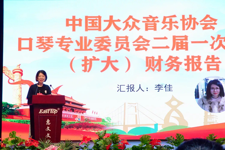 中國大眾音樂協(xié)會口琴專業(yè)委員會副秘書長李佳代表一屆理事會做財務(wù)報告,專委會各項活動的順利進行和取得的豐碩的成績始終得到了江蘇東方樂器有限公司的慷慨資助。