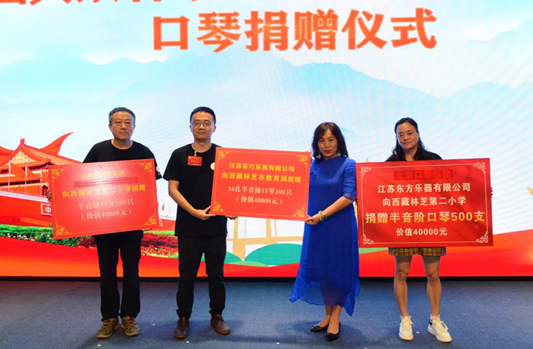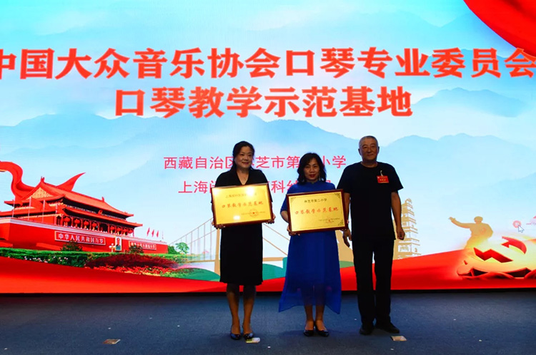大會對西藏自治區(qū)林芝市第二小學和上海閔行區(qū)萬科幼兒園進行中國大眾音樂協(xié)會口琴專業(yè)委員會“口琴教學示范基地”授牌儀式,在汕頭市金禧中學任教的王麗奎老師自2019以來參加援藏工作在林芝市第二小學支教,王麗奎老師在西藏地區(qū)積極推廣口琴音樂,并培養(yǎng)了當?shù)氐目谇訇犖?。江蘇東方樂器有限公司和北京口琴樂團為表達對王老師的敬意分別捐贈價值8萬元和價值4萬元的口琴。