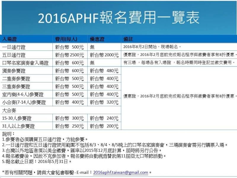 第十一屆亞太口琴節(jié)(2016臺(tái)灣)官網(wǎng)地址:http://www.hapa.org.tw/aphf