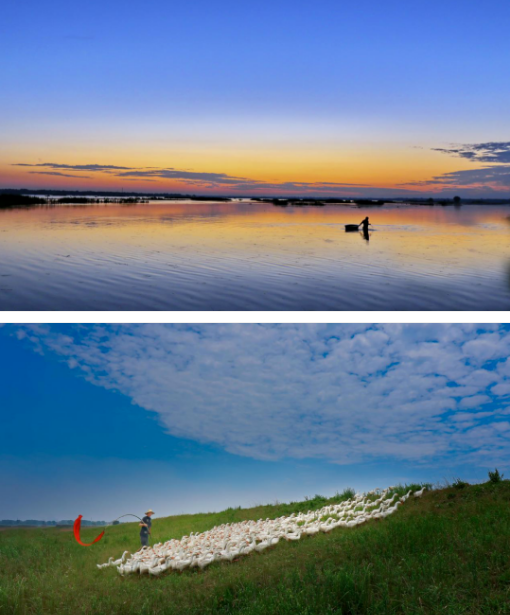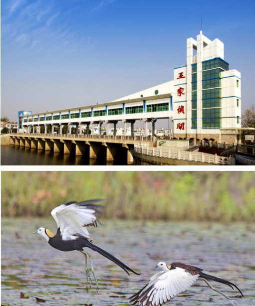 阜南縣歷史悠久、文化底蘊(yùn)厚重。這里是三國名將呂蒙、清代詩人劉體仁、解放軍將領(lǐng)聶鶴亭將軍的故里,曾出土商代青銅器“龍虎尊”等一批文物。宋代詩人歐陽修盛贊焦陂酒,寫下了“焦陂八月新酒熟,秋水魚肥膾如玉”的名篇佳句。 獨(dú)具地方特色的“嗨子戲”、“柳編工藝”被命名為非物質(zhì)文化遺產(chǎn)。這里是“中國柳編之都”,是聞名全國的“王家壩精神”發(fā)源地。這里還有品樣豐富、味道的地方風(fēng)味美食。曹集蜆子、郜臺(tái)板鴨、會(huì)龍板雞、清真牛羊肉、方集馓子……令人垂涎欲滴! 阜南縣推進(jìn)文化與旅游的深度融合,加快鄉(xiāng)村旅游發(fā)展,以“紅色旅游為引領(lǐng),蒙洼濕地生態(tài)美,莊臺(tái)人家淮水情”為主體的特色旅游線路初步形成。下面,就請(qǐng)我?guī)銇砜纯锤纺蠋滋庯L(fēng)光旖旎、令人流連忘返的景點(diǎn)。 王家壩濕地公園 王家壩濕地公園總面積7054.47公頃,其中濕地面積占6761.71公頃 ,濕地率達(dá)95.85%。主要包括蒙河及兩側(cè)灘涂地。 王家壩濕地公園沃野良田,河岔縱橫,魚翔淺底,飛禽歡歌;一年四季,如詩如畫。寬闊的濕地,豐富的資源,良好的生態(tài),使鳥類精靈常年在這里駐足、棲息。水雉、綬帶、天鵝……據(jù)統(tǒng)計(jì)濕地的鳥類達(dá)200余種。這里成為鳥兒們的天堂,構(gòu)成了一幅美麗醉人的生態(tài)和諧、互利共生的畫卷。