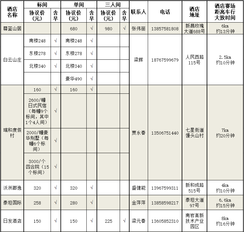 ![]() 第四屆華夏(新昌)口琴藝術(shù)節(jié)將于2023年7月28-8月1日在浙江新昌舉辦.本屆藝術(shù)節(jié)不僅有口琴展演還有大師音樂會、大講堂、教師培訓、考級等,活動豐富多彩! 新昌是中國山水詩,山水畫發(fā)祥地,也是浙東唐詩之路、佛教之旅、茶道之源的精華所在。更有詩仙李白千古名篇《夢游天姥吟留別》的天姥山。生態(tài)環(huán)境良好,旅游資源豐富,是省級生態(tài)縣。全縣人文和自然景觀多達300多處,擁有天姥山*********風景名勝區(qū)、國家地質(zhì)公園、*********水利風景區(qū),以及大佛寺、沃洲湖、穿巖十九峰等三大省級風景名勝區(qū),其中天姥山是李白夢游之地,文化名山;大佛寺是國家4A級旅游區(qū),江南第一大佛有1600年歷史;穿巖十九峰集“漓江之美、雁蕩之奇、桂林之秀”于一身。良好的自然生態(tài),深厚的文化積淀,優(yōu)美的景區(qū)景點,吸引了眾多的國內(nèi)外游客。 為了參賽琴友更好的體驗賽事及新昌地方文旅,組委會特別針對本屆藝術(shù)節(jié)分別從住宿和用餐為大家提供了細致的服務(wù),經(jīng)過精心篩選,推薦了以下酒店和快餐供應(yīng),供各位琴友選擇預(yù)訂. 推薦酒店 ![]() 快餐供應(yīng) (中餐和晚餐) 即日起,酒店可接受預(yù)訂,請與酒店負責人直接聯(lián)系,先訂先得. |